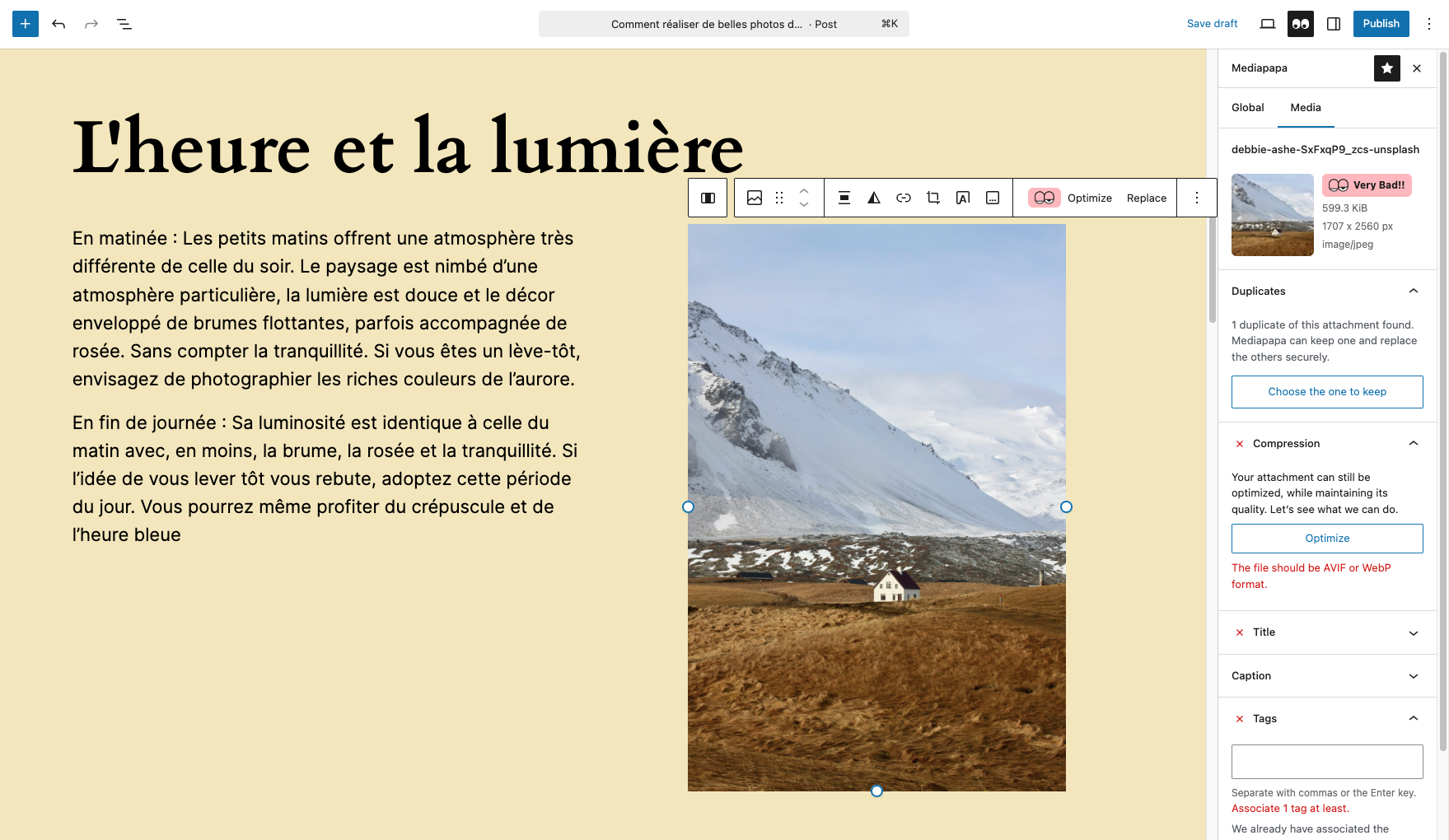 Whether you are a blogger, agency, or content editor, Mediapapa saves you time and ensures your media is always well-prepared for publishing.