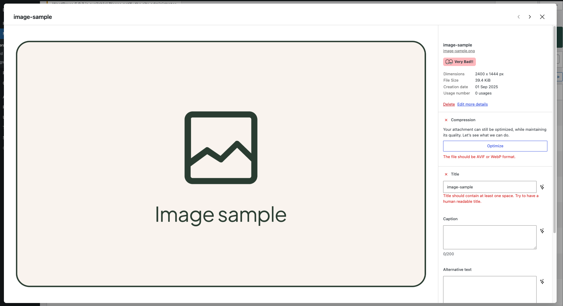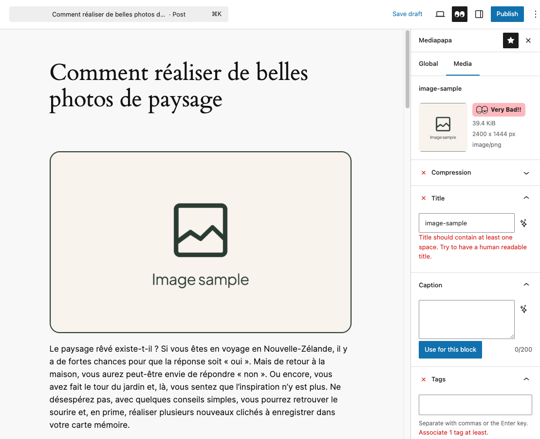 Finally, in every Mediapapa panel, by clicking the twinkle icon near a metadata, you can ask AI to provide Alt Text, Title, and Caption.